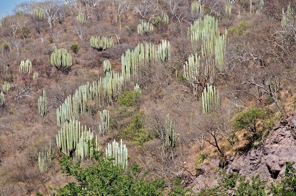 Wie ich gestern geschrieben habe, mussten wir uns heute temporär vom Pazifik verabschieden und Acapulco hinter uns lassen. Die Fahrt hierhin führt durch eine sehr abwechslungsreiche Landschaft, Halbwüsten-ähnliche Gebieten wechseln sich mit Kakteenhügeln ab. Die Kakteen sind mir unbekannt, vergleichbare Pflanzen gibt es in Baja California und im Süden der USA jedoch viele. Und die Landschaft wird auch hier durch diese riesigen Pflanzen geschmückt.