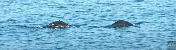 Nachtrag nach dem Morgenessen: Zu unserer Ankunft 4 Wochen zuvor in diesem Hotel haben uns am frühen Morgen beim Frühstück einige Buckelwale begrüsst, die nur wenige Dutzend Meter vor der Frühstücksterasse zum Atemholen auftauchten. Heute zum Abschied nochmals dasselbe Spektakel, diesmal gelangen mir aber einige Aufnahmen.