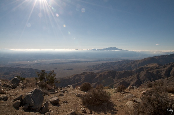 Von einem Aussichtspunkt öffnet sich eine ausgezeichnete Sicht auf das Tal von Palm Springs mit dem Mount Jacinto. Der dunkle Strich in der Mitte des Bildes markiert den St. Andreas Graben, der Kalifonien fast der ganzen Länge nach durchschneidet und damit eine der aktivsten Erdbebenzonen der Welt erzeugt. Die Ozeanische Platte schiebt sich hier unter die Kontinentale Platte und sorgt so für häufige Erdbeben.