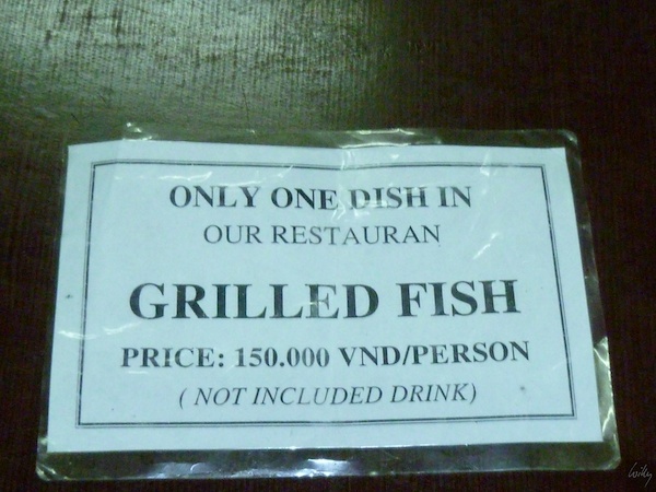 Ein einziges Gericht wird hier serviert, grillierter Fisch mit den immer gleichen Zutaten: