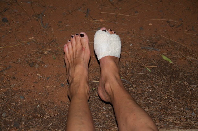 Für einmal nicht meine Füsse, sondern jene von Brigitte. Ein Stich eines Insektes machte eine Operation und viel Antibiotika notwendig, da die Einstichstelle massiv anschwoll und stark schmerzte. Nach 3 Tagen Spital Aufenthalt in Mount Isa, Queensland, Australien war die Sache wieder in Ordnung und in einigen Tagen kann auch der Verband wieder weg.