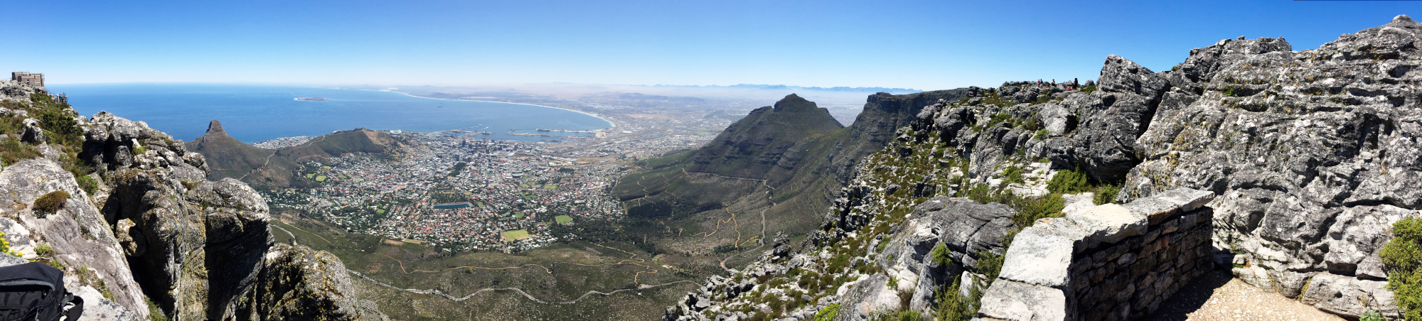 In Richtung Süden liegt die ganze Kap-Halbinsel zu Füssen. Zuunterst das Kap der Guten Hoffnung, welches ich vor einigen Tagen besuchte. Ein grandioser Rundblick und dies bei wolkenlosem Himmel und angenehmen 25 Grad ohne Wind! Geduld zahlt sich manchmal eben doch aus!