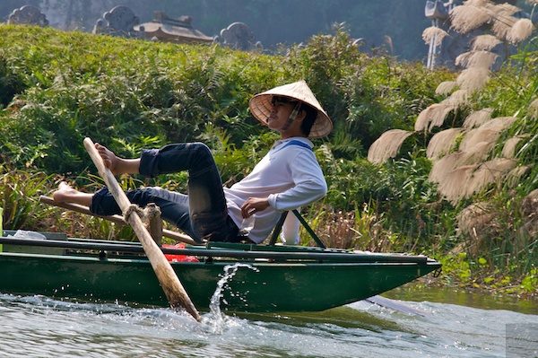 Fuss-Rudern in der trockenen Halong-Bay