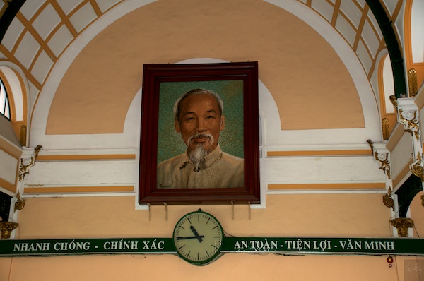 Am Morgen waren wir zu Fuss in der Stadt unterwegs, unter anderem besuchten wir die alte Hauptpost, welche noch von den Franzosen erbaut wurde. Noch heute wird das Gebäude für seinen ursprünglichen Zweck verwendet. Ein Portrait Ho Chi Minhs ziert die Stirnseite der grossen Halle und zeugt von der neuen Zeit.