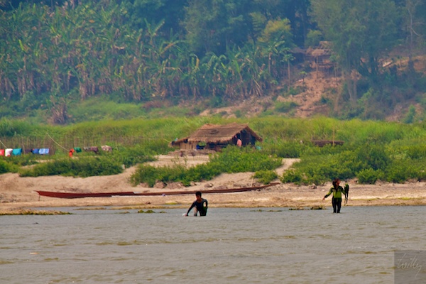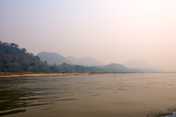 Die Stimmung am Fluss war heute wiederum sehr mystisch. Die Bauern in dieser Gegend von Laos brennen zu zwischen März und April ihre Reisfelder ab, um für die kommende Regenzeit gerüstet zu sein. Dann werden die Reissetzlinge ausgebracht und dafür müssen die Felder richtig vorbereitet sein. Leider erzeugt diese Verbrennung sehr viel Rauch, der einerseits die Luft düster macht und andererseits mit der Zeit in den Augen brennt. Diese „Slash and Burn“ Methode ist hier leider immer noch sehr stark verbreitet.