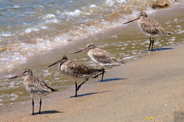 Weiter ging es dann mit Wasservögeln am Strand in Airlie Beach, einem hippen Badeort an der hiesigen Küste. Diese Gruppe von Godwit ruhte sich an der Wasserlinie aus, bevor sie mit ihrer Futtersuche weiter machten. So schön die Strände hier auch sind, für den Menschen sind sie nahezu unbrauchbar: Entweder sind Haie in der Gegend, welche jederzeit auf ein vermeintlich leckeres Essen aus sind, oder dann machen die Box-Jellyfish das Baden sehr gefährlich. Von Oktober bis Mai jeden Jahres sind sie in diesen Wassern präsent, Juni bis September bringt kühlere Wassertemperaturen ohne Quallen. Dafür sind dann die Haie hier. Stonefish, welche ebenfalls sehr giftig sind, liegen ab und zu am Grund und stechen beim Draufstehen in die Fusssohle. Wem das alles noch nicht genügt, der sei vor den Krokodilen gewarnt, welche ebenfalls in diesen Geässern leben. Soviel zum Badespass in Australien, zum Glück erfand jemand den Swimmingpool!