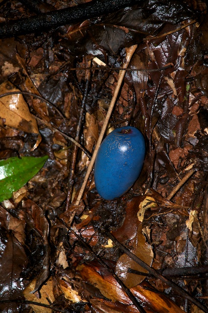 Schon seit einigen Tagen sind wir bisher erfolglos auf der Suche nach einem Cassowary, einem grossen einheimischen Vogel, der aber nicht fliegen kann. Er ist vergleichbar mit einem kleinen Strauss oder auch dem einheimischen Emu. Heute sahen wir immerhin schon mal seine Leibspeise, diese blauen Früchte (Cassowary Plum) mag er besonders. Diese hier wohl eher nicht, denn er war nicht in der Nähe. Grabspuren auf der Seite des Weges zeigten aber, dass er oft in dieser Gegend ist, nur nicht gerade wenn auch wir da sind. Wenn er wüsste, dass er sich so eine einmalige Chance auf eine Webpräsenz vergibt! Noch hat er aber weitere Chancen, denn wir werden noch einige Tage hier verbringen.