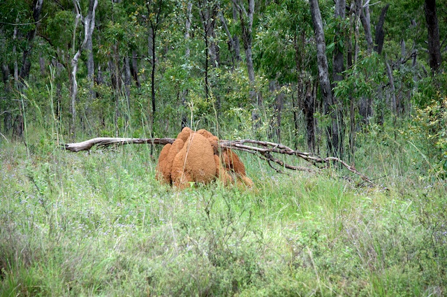 Bald schon tauchten wieder riesige Termiten-Hügel auf, alle hatten die Farbe der umliegenden Erde. Von tiefrot bis zu eher farblosem Grau reichte die Palette. Diese Termiten verleibten sich ihr Futter gerade in den Hügel ein, so ist die Futtersuche viel einfacher und die Wege sind erst noch kürzer. Erfinderisch muss Termite sein!