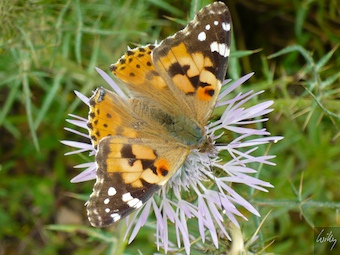 Eine schöne Blüte erfreut nicht nur uns, auch ein Schmetterling lässt sich darauf nieder und geniesst die wärmende Sonne.