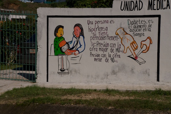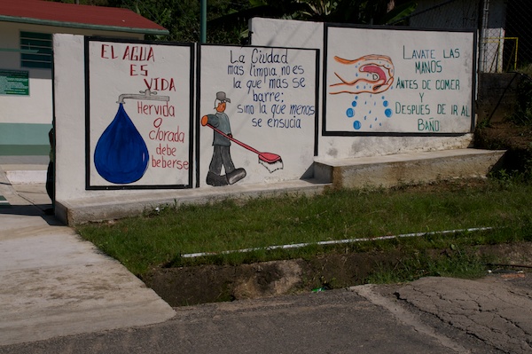 Die Klinik in einer kleinen Ortschaft betreibt auf ihren Wänden Gesundheits-Aufklärung: Wasser soll nur entweder sehr heiss gekocht oder dann chloriert verwendet werden, die Hände vor dem Essen und nach dem WC-Besuch gewaschen werden.